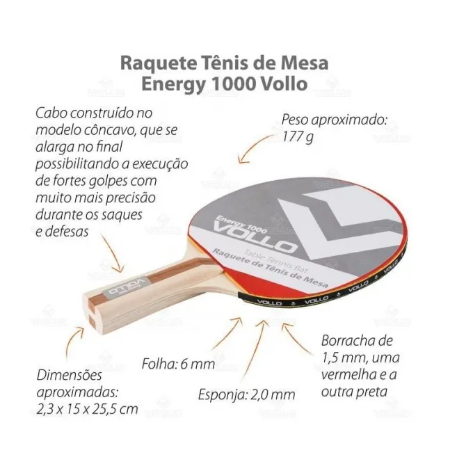 Raquete de Tênis de Mesa Ping Pong Energy 1000 Vollo