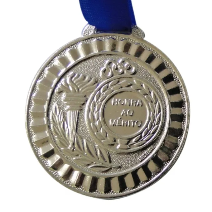 O suporte para fita de 2,5 cm de largura permite a escolha entre diversas fitas de cetim, incluindo a cor azul, garantindo um toque especial e personalizado. Seja em competições, eventos esportivos ou homenagens, esta medalha destaca-se pela qualidade e atenção aos detalhes.